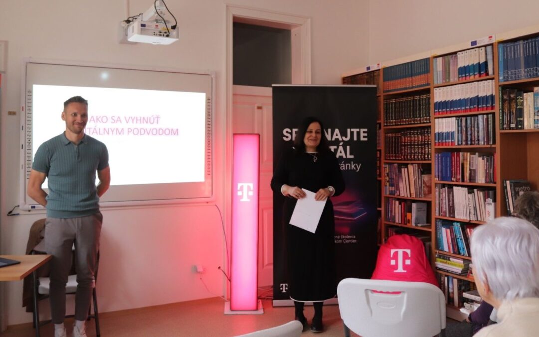 Súčasťou nášho úspešného projektu SmartSvet v rámci programu Digitálny región sa budú môcť naši seniori počas celého roka vzdelávať prostredníctvo interaktívnych workshopov, ktoré si pre nich pripravujú špecialisti z Telekom Centier v spolupráci so Knižnica SNV, kultúrnym zariadením Košický samosprávny kraj. Prvé takéto spoločné stretnutie sa uskutočnilo v utorok 21. apríla 2026. A keďže digitálne podvody sú dnes čoraz sofistikovanejšie a môžu sa dotknúť každého z nás, seniori sa na tomto praktickom workshope dozvedeli, aké podvody sa najčastejšie vyskytujú, prečo fungujú a ako sa voči nim účinne brániť. Postupne sme si prešli účinné kroky, ako si chrániť mobil, počítač aj svoje súkromie bez technických zložitostí. Seniori sa dozvedeli aj to, ako rozpoznať podozrivé správy, hovory či situácie a ako správne reagovať bez zbytočného stresu. Cieľom workshopu bolo našim najzraniteľnejším dodať istotu a pomôcť pri osvojovaní praktických zručností, aby sa vedeli bezpečne pohybovať v digitálnom svete a nenechali sa oklamať.