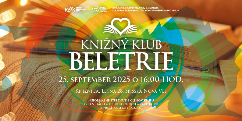 A keďže ide o prvé stretnutie po letnej prestávke, veríme, že sa naši členovia pochvália tým, čo všetko zaujímavé cez leto prečítali. Príďte sa s nami porozprávať o knihách vo štvrtok 25. septembra 2025 o 16.00 hod. v priestoroch Spišského kultúrneho centra a knižnice, kultúrneho zariadenia Košického samosprávneho kraja, na Letnej 28.