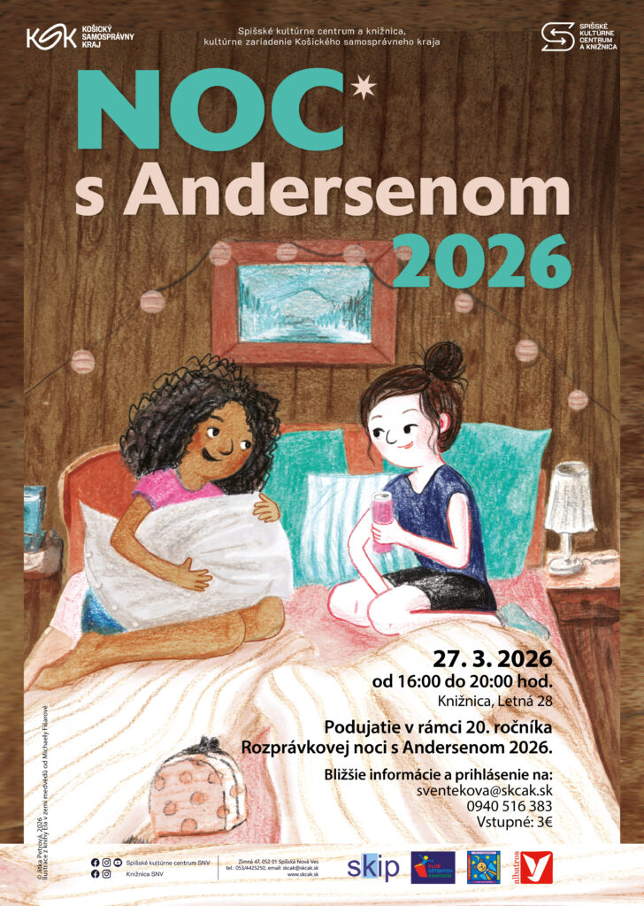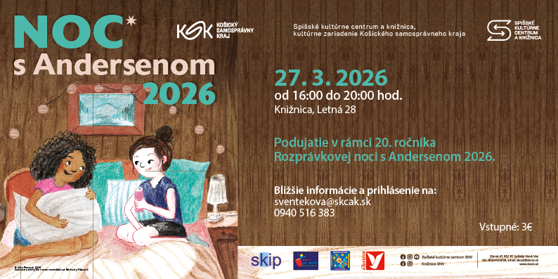 Srdečne vás pozývame na podujatie s názvom Noc s Andersenom do Spišského kultúrneho centra a knižnice, kultúrneho zariadenia Košického samosprávneho kraja, ktoré sa tento rok ponesie v duchu olympijských hier a rozprávkového sveta Walta Disneyho. V rámci 21. ročníka tohto medzinárodného podujatia zažijeme spolu v knižnici 27. marca 2026 od 16.00 do 20.00 hod. nezabudnuteľné olympijské dobrodružstvo s postavičkami z dielne Walta Disneyho.