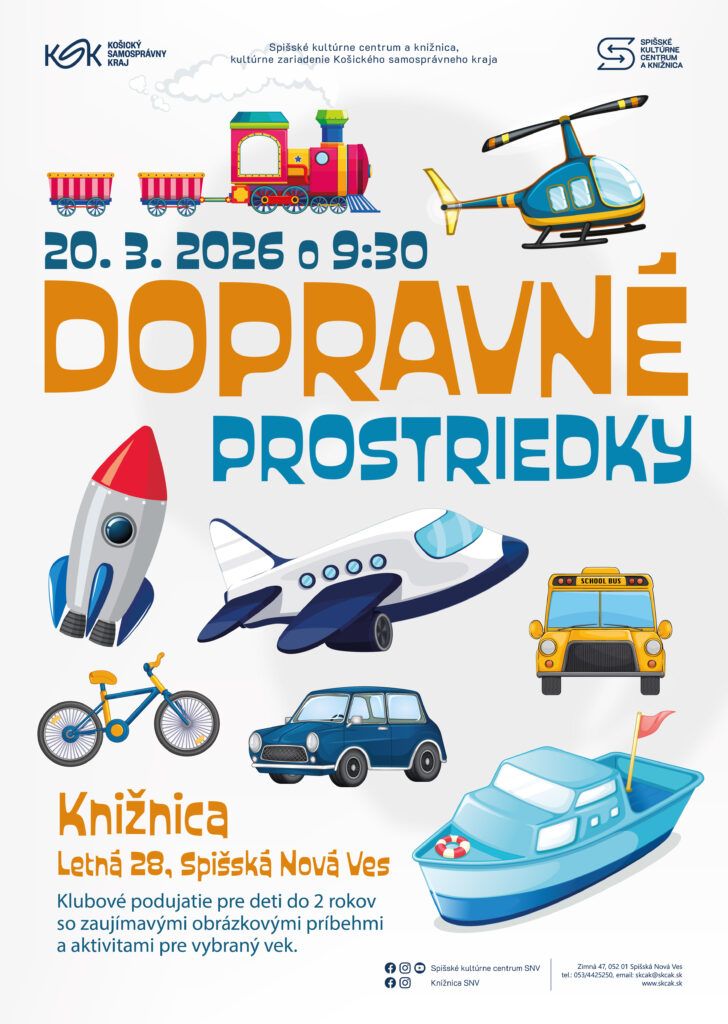 V Spišskom kultúrnom centre a knižnici, kultúrnom zariadení Košického samosprávneho kraja, privítame 20. marca 2026 o 9.30 hod. s otvorenou náručou tých najmenších čitateľov spolu s ich rodičmi. Opäť vstúpime do Rozprávkova a spoločne sa vydáme na hravú a poučnú cestu sprevádzanú dopravnými značkami na podujatí s názvom Malé kolieska, veľká zábava. Naše najmenšie ratolesti sa hravou a zábavnou formou naučia, ako sa treba správať na ceste. Dozvedia sa, že chodci, cyklisti aj autá majú svoje pravidlá, ktoré nás chránia a umožňujú nám bezpečne sa pohybovať v cestnej premávke. Ukážeme si, že cesta môže byť plná radosti, objavovania a dobrodružstva, no pritom bezpečná, aby si nikto neublížil.
