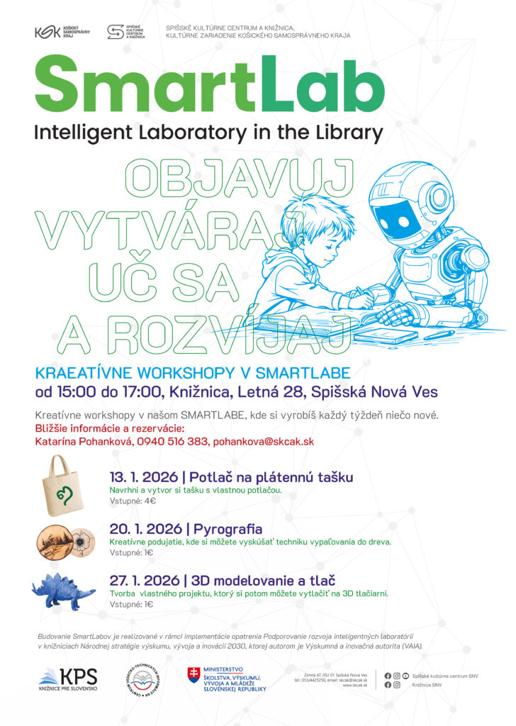 O SmartLabe: Budovanie SmartLabov v knižniciach je realizované v rámci implementácie opatrenia Podporovanie rozvoja inteligentných laboratórií v knižniciach Národnej stratégie výskumu, vývoja a inovácií 2030, ktorej autorom je Výskumná a inovačná autorita (VAIA).
