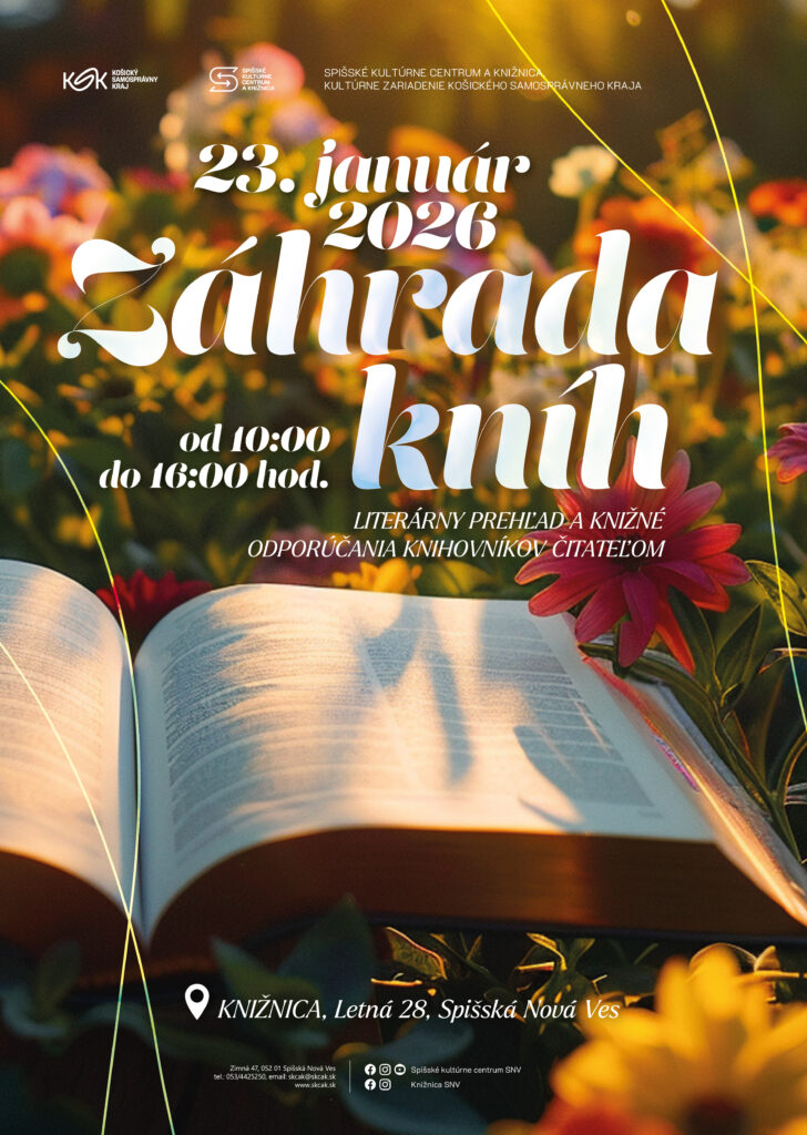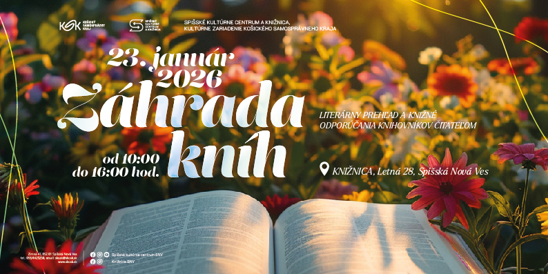 Veľmi radi 23. januára 2026 opäť privítame každého, kto má záujem dozvedieť sa, čo čítajú knihovníci Spišského kultúrneho centra a knižnice, kultúrneho zariadenia Košického samosprávneho kraja. Posedíme si pri káve či bylinkovom čaji a podelíme sa o zážitky z prečítanej literatúry. Všetci ste v knižnici na Letnej 28 vítaní. V priestoroch beletrie pre dospelých sa vám budú od 10.00 do 16.00 hod. venovať knihovníci, ktorí vám ochotne pomôžu aj s výberom kníh, ktoré vám spríjemnia všedné aj víkendové dni.